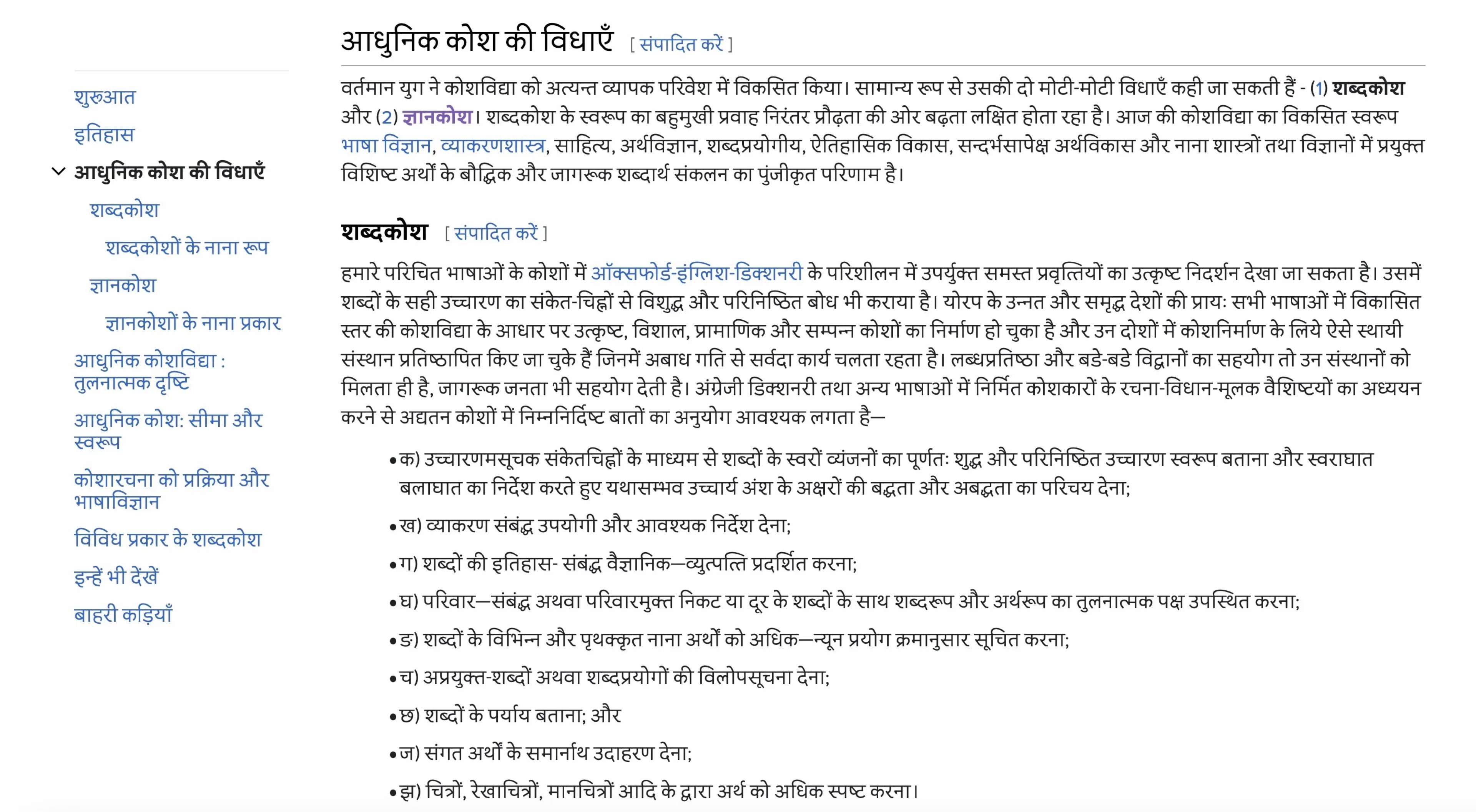 A sample page from Wikipedia used in the testing process, with Hindi text in Proxima Nova Devanagari.